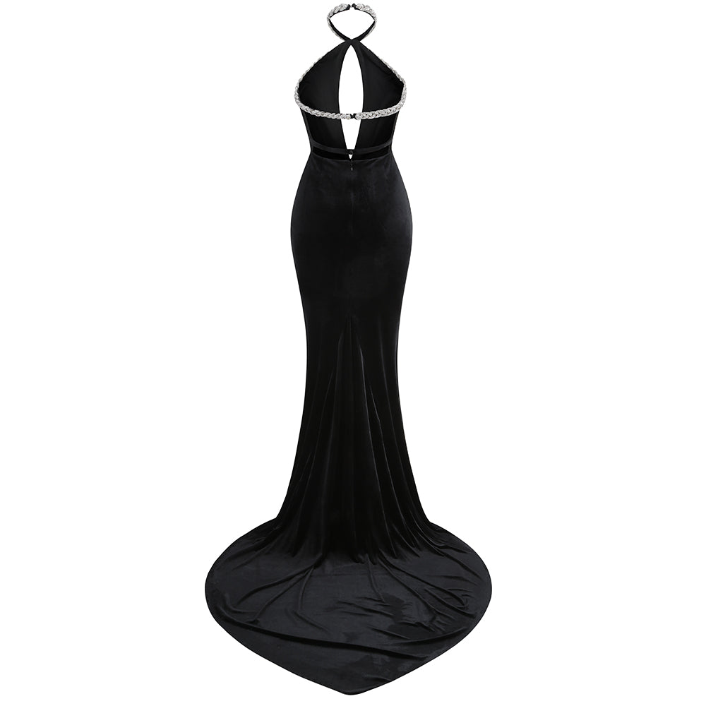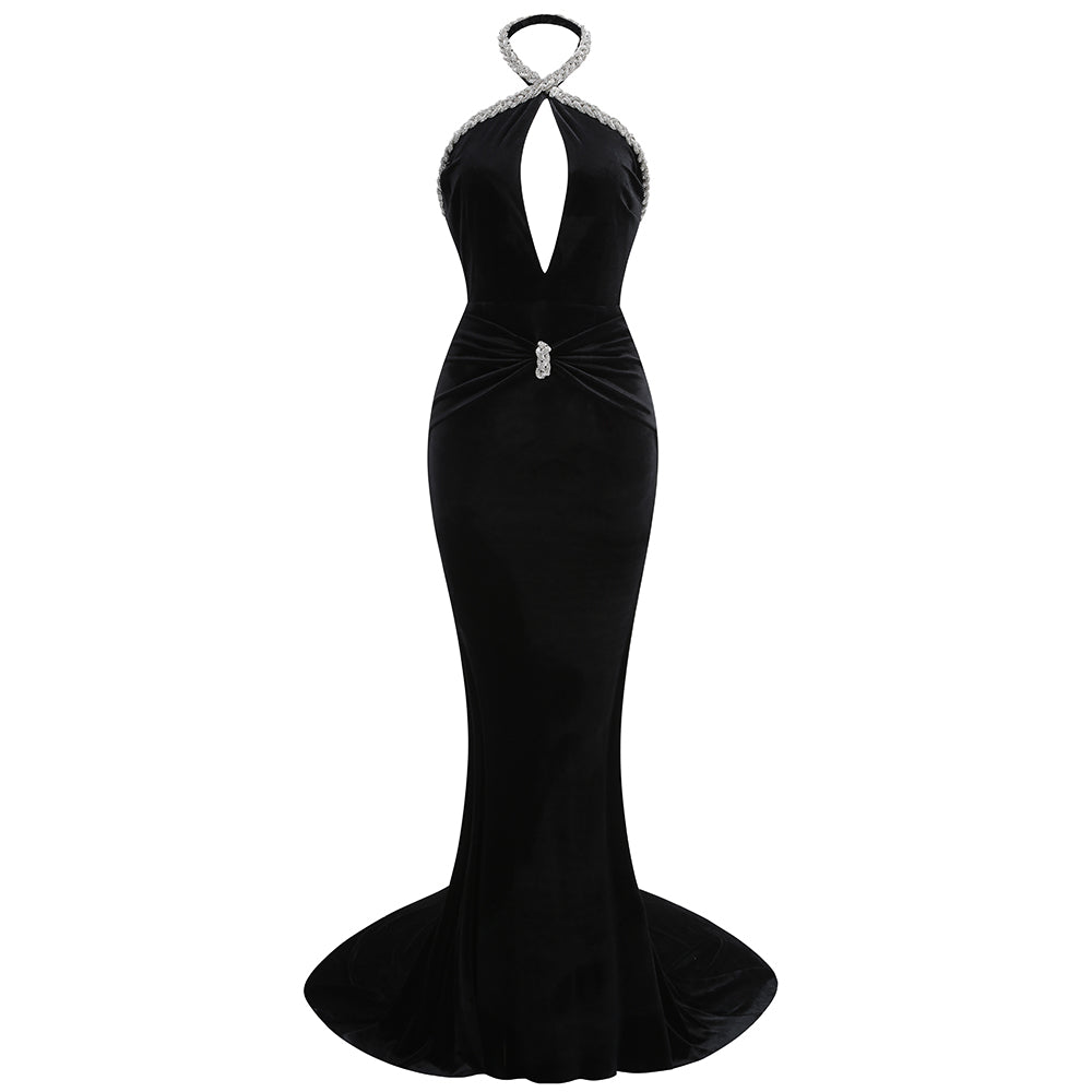 Midnight velvet shaped into elegance, a gown that whispers luxury and leaves the room holding its breath. Holiday glamour, done the powerful way.